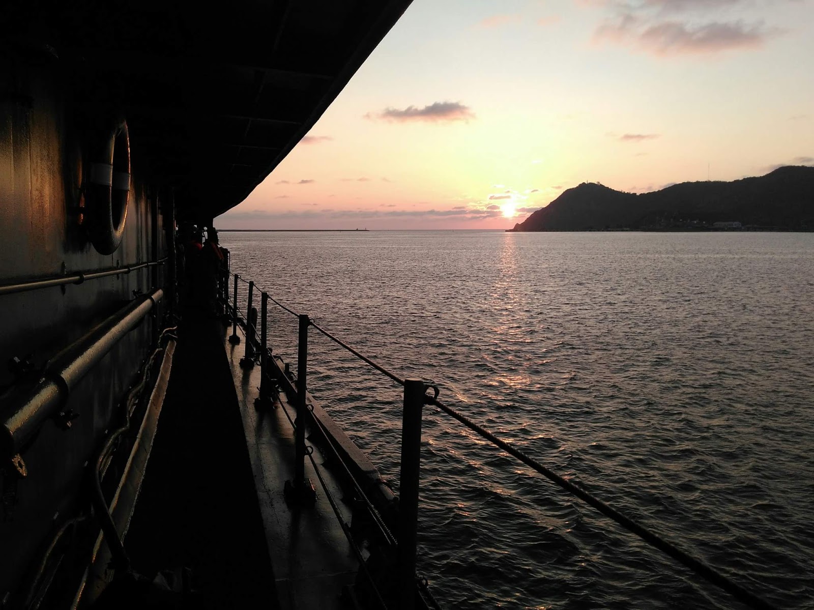 ร.ล.มกุฎราชกุมาร (433) ก่อนเข้าเทียบท่า ที่ ฐานทัพเรือสัตหีบ เวลา 1800 น. เมื่อ 17 มี.ค.61
